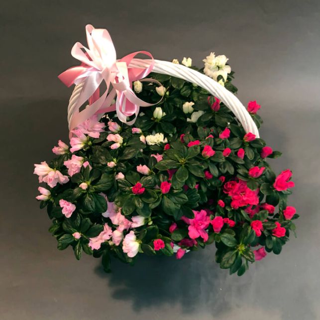 At Camellia store, you will find the finest flowers, among which azaleas hold a special place. Our Azalea Mix Basket is a wonderful opportunity to make a beautiful gift for yourself or your loved ones. It consists of colorful azaleas that bloom at the same time, creating an incredible mosaic of colors and aromas. Each azalea in the basket is a masterpiece from the best suppliers, ensuring their exquisite quality and long-lasting beauty. Purchasing our Azalea Mix Basket, you will not only get a unique bouquet but also a piece of natural harmony that will bring you joy and a sense of peace.