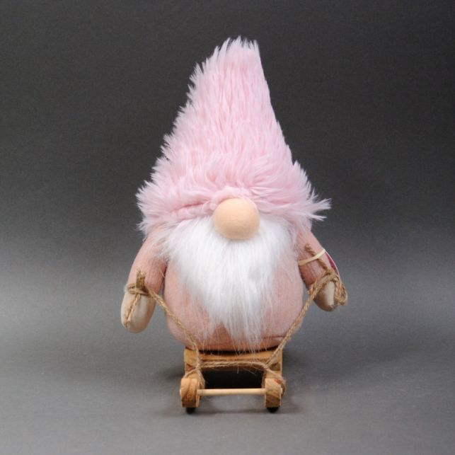 New Year decorations soft toy "Gnome on a sled with LED lighting" in assortment, 27 cm gray and pink. Bonadi brand.