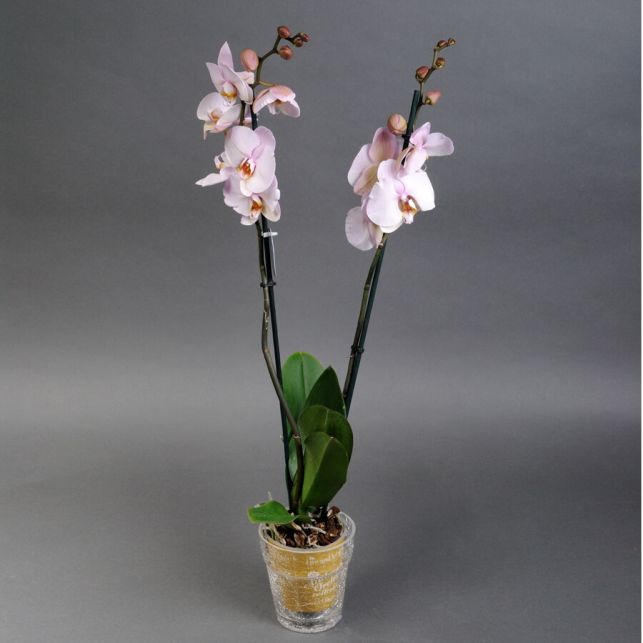 Phalaenopsis orchid on 2 branches in assortment in pot