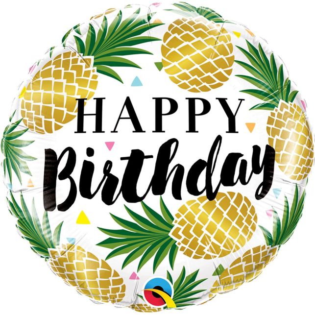 Пуля круглая "Happy Birthday" с ананасами станет отличным дополнением к подарку в честь Дня Рождения.