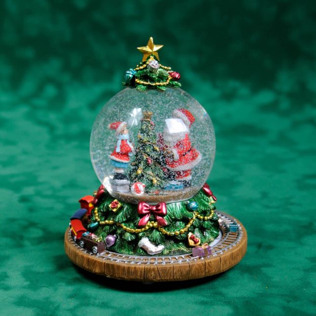 Декоративный водяной шар "Санта с поездом" с новогодней мелодией.