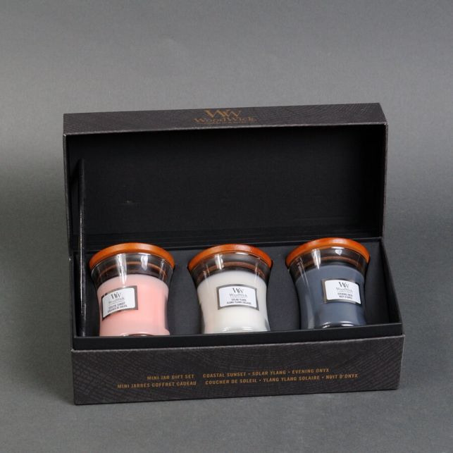 Набір свічок WoodWick: Coastal Sunset, Evening Onix, Solar Ylang
