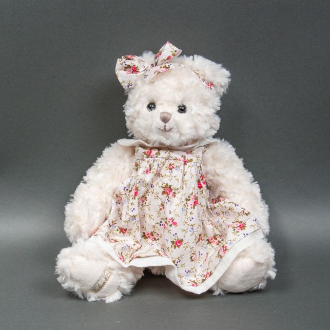 М'яка іграшка Bukowski ведмежатко-дівчинка в сарафані з бантиком.